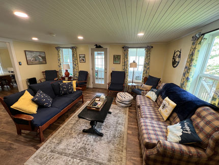 The White Cottage is a two-story cottage located on the water’s edge. It is a bright, fully furnished home-away-from-home with a living room, dining room, fully equipped kitchen, two full baths, three bedrooms, and a fully enclosed porch extending across the entire front of the home. This home skillfully integrates several extra beds that you would typically find in a much larger home design so that you have flexibility in sleeping arrangements to best suit YOUR family.